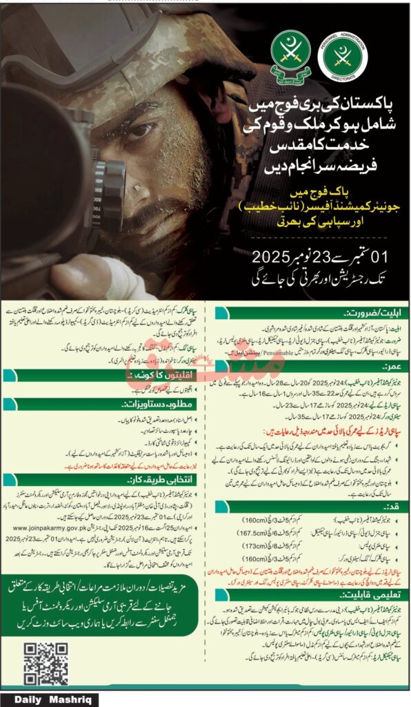 Pakistan Army Peshawar Jobs 2025 are a golden chance for candidates with Intermediate or Bachelor qualifications. If you want a secure career, good salary, and respect, this is your opportunity. Submit your application before 20 September 2025 and become a part of the Pakistan Army.
